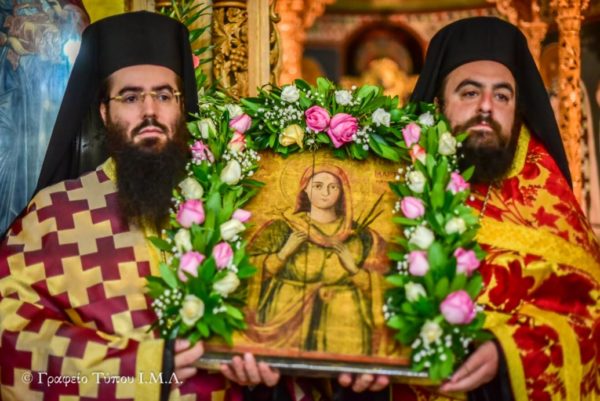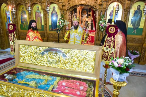 Προ της περατώσεως της κατανυκτικής ιεράς Αγρυπνίας, στην σύντομη προσλαλιά του ο Σεβασμιώτατος Μητροπολίτης Λαγκαδά, Λητής και Ρεντίνης κ. Πλάτων, εξέφρασε λόγους ευχαριστίας ονομαστικά προς το κάθε Μητροπολίτη καθώς και προς όλους τους παρισταμένους που προσήλθαν με αγάπη και τηρώντας όλα τα προβλεπόμενα μέτρα προστασίας κατά της διασποράς του νέου κορωνοϊού, εις την επαρχία του Λαγκαδά και λάμπρυναν με την παρουσία τους την εορτή της μνήμης της μεγάλης Νεομάρτυρος, ενώ δεν παρέλειψε να αναφερθεί με συγκίνηση στο πρόσωπο του μακαριστού προκατόχου του και αγιοφίλου Μητροπολίτου κυρού Ιωάννου, επί των ημερών του οποίου ευρέθησαν κατά θαυμαστό τρόπο, τα σεπτά και χαριτόβρυτα λείψανα της Αγίας εντός του ιερού Βήματος του ιστορικού Προσκυνηματικού Ναού Παμμεγίστων Ταξιαρχών Όσσης.