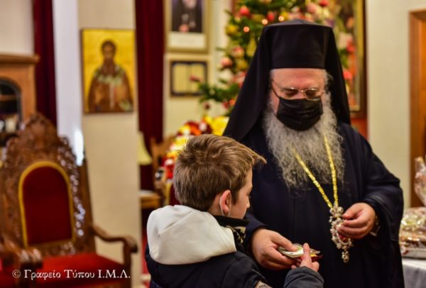 Στον σύντομο χαιρετισμό του ο Σεβασμιώτατος, με πολλή αγάπη προσφώνησε όλους τους παρισταμένους, εκφράζοντας την χαρά του για την σημερινή επικοινωνία που δίδεται μέσα από την όμορφη αυτή εκδήλωση, σημειώνοντας παράλληλα την ανάγκη της ενότητας, της αγάπης και της πνευματικής συνοχής που πρέπει να υπάρχει στις μεταξύ μας σχέσεις, έτσι ώστε μέσα από την κοινή συστράτευση, να μπορέσουμε να εργασθούμε για το κοινό καλό του τόπου και της επαρχίας μας, αντιμετωπίζοντας με επιτυχία τις προκλήσεις της νέας χρονιάς.