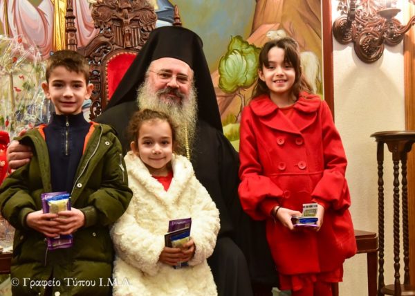 Στην προσφώνηση του ο Σεβασμιώτατος, μαζί με τις εγκάρδιες ευχές του για καλή και ευλογημένη χρονιά, εξέφρασε την χαρά του για την σημερινή ημέρα και την ευκαιρία της άμεσης επικοινωνίας που δίδεται προς όλους μέσα από την όμορφη αυτή εκδήλωση, τονίζοντας την ανάγκη της συστρατεύσεως για το κοινό καλό του τόπου μας έχοντας ως πυξίδα την εν Χριστώ Ζωή, ενώ παράλληλα αναφέρθηκε στο πολυσήμαντο έργο των ενοριών και τις ανάγκες των ενοριτών αυτών, κάνοντας παράλληλα και ένα σύντομο απολογισμό των πεπραγμένων του κοινωνικού και του φιλανθρωπικού έργου της Μητροπόλεως, ευχόμενος τέλος ο νέος χρόνος να είναι έτος πίστεως και αγάπης και προόδου της Πατρίδος.