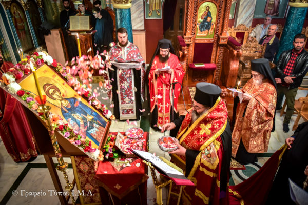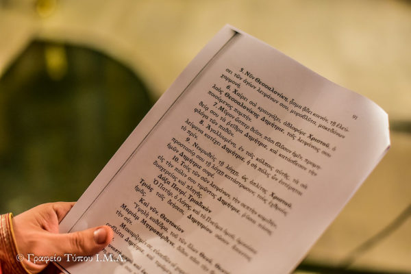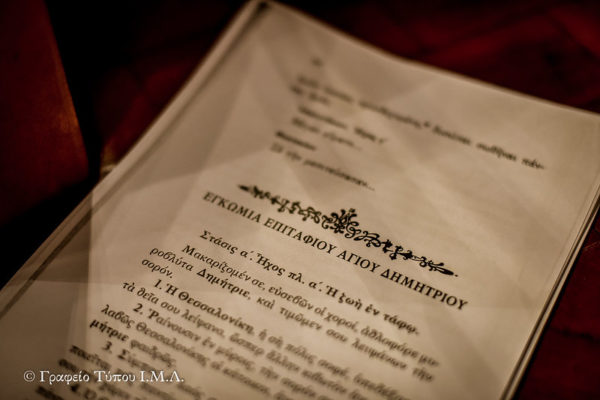 Προ της ενάρξεως της συγκινητικής αυτής Ακολουθίας, εκόμισθη υπό του Σεβασμιωτάτου απότμημα του Σεπτού και Χαριτοβρύτου Ιερού Λειψάνου του Αγίου Δημητρίου, το οποίο και ετοποθετήθη εις το μέσον του Ναού.