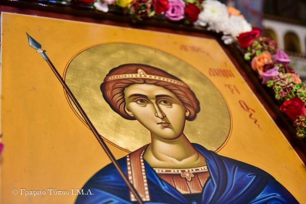 Παράλληλα αναφέρθηκε στα Πολιουχικά Θαύματα του Αγίου καθώς επίσης χαρακτήρισε τον Άγιο Δημήτριο παράδειγμα για τους νέους, ο οποίος δίδασκε ως Κατηχητής, χωρίς φόβο αλλά με δύναμη ζωής και θάρρος, την αληθινή του Πίστη και την Αγάπη του προς τον Κύριο.