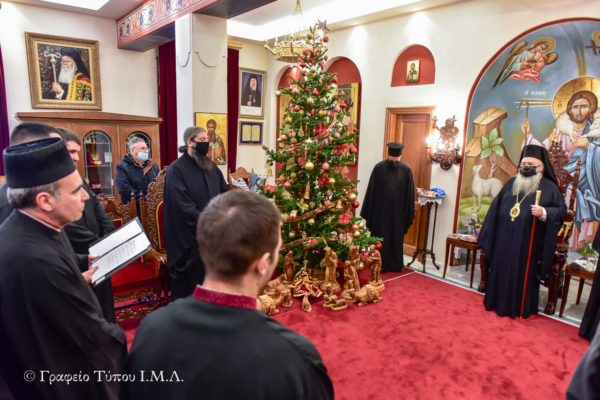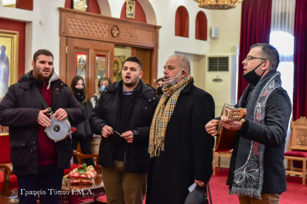 Εκτός από τις μικρές ομάδες των πολλών παιδιών που με τις χαρούμενες παιδικές φωνές τους και με τον διάχυτο αυθορμητισμό πλημύρισαν την Αίθουσα του Θρόνου της Μητροπόλεως, τα βυζαντινά και τα παραδοσιακά κάλαντα τραγούδησαν, η Βυζαντινή Χορωδία Ιεροψαλτών της Μητροπόλεως «ο Απόστολος Παύλος», τα κατηχητικά τμήματα του Ιερού Μητροπολιτικού Ναού και της ενορίας του Αγίου Νικολάου Λαγυνών.