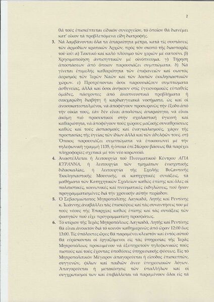 Δείτε την Εγκύκλιο του Σεβασμιωτάτου: