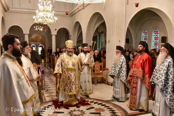 Προ της Απολύσεως της Αρχιερατικής Θείας Λειτουργίας, ο Σεβασμιώτατος συμπληρώνοντας τον ομιλητή, αναφέρθηκε στις μορφές των Αγίων της Εκκλησίας μας ως πρότυπα βίου των ανθρώπων, οι οποίοι και εφάρμοσαν το Θέλημα του Θεού γενόμενοι θεούμενοι και θεοφόροι, χρησιμοποιώντας την φράση του μακαριστού Μητροπολίτου Θεσσαλονίκης Παντελεήμωνος Β΄ (Χρυσοφάκη), «η ζωή της Αγίας μας Εκκλησίας είναι η ζωή των Αγίων και η ζωή των Αγίων είναι η ζωή της Εκκλησίας», και τονίζοντας μεταξύ άλλων ότι «ο άνθρωπος εφόσον το θέλει πραγματικά μπορεί να κερδίσει την Σωτηρία, αρκεί να πιστεύει στον Θεό και να ζει μέσα στην Εκκλησία», ενώ δεν παρέλειψε να κάνει ιδιαίτερη αναφορά στις μεγάλες μορφές του Αγίου Ιωάννου του Κλίμακος και του Αγίου Θεωνά Αρχιεπισκόπου Θεσσαλονίκης, σημειώνοντας το παράδειγμα και την εν Χριστώ ζωή του και προτρέποντας στο τέλος το πολυπληθές εκκλησίασμα να μεταβεί εις την Ιερά Πατριαρχική Μονή της Αγίας Αναστασίας της Φαρμακολυτρίας και να προσκυνήσουν το Σεπτό Λείψανο του, ώστε να δεχτούν την Χάρη και την Ευλογία του Αγίου.