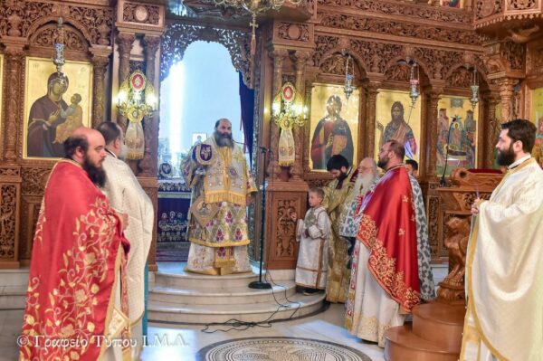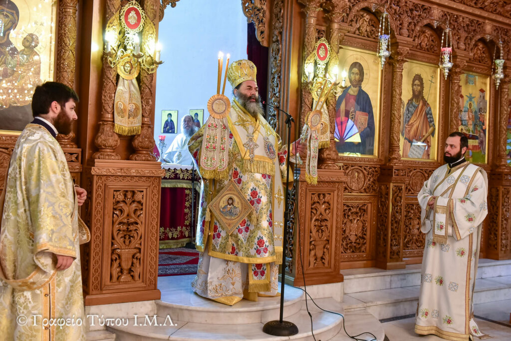 Προ της Απολύσεως της Αρχιερατικής Θείας Λειτουργίας, ο Σεβασμιώτατος συμπληρώνοντας τον ομιλητή, αναφέρθηκε στις μορφές των Αγίων της Εκκλησίας μας ως πρότυπα βίου των ανθρώπων, οι οποίοι και εφάρμοσαν το Θέλημα του Θεού γενόμενοι θεούμενοι και θεοφόροι, χρησιμοποιώντας την φράση του μακαριστού Μητροπολίτου Θεσσαλονίκης Παντελεήμωνος Β΄ (Χρυσοφάκη), «η ζωή της Αγίας μας Εκκλησίας είναι η ζωή των Αγίων και η ζωή των Αγίων είναι η ζωή της Εκκλησίας», και τονίζοντας μεταξύ άλλων ότι «ο άνθρωπος εφόσον το θέλει πραγματικά μπορεί να κερδίσει την Σωτηρία, αρκεί να πιστεύει στον Θεό και να ζει μέσα στην Εκκλησία», ενώ δεν παρέλειψε να κάνει ιδιαίτερη αναφορά στις μεγάλες μορφές του Αγίου Ιωάννου του Κλίμακος και του Αγίου Θεωνά Αρχιεπισκόπου Θεσσαλονίκης, σημειώνοντας το παράδειγμα και την εν Χριστώ ζωή του και προτρέποντας στο τέλος το πολυπληθές εκκλησίασμα να μεταβεί εις την Ιερά Πατριαρχική Μονή της Αγίας Αναστασίας της Φαρμακολυτρίας και να προσκυνήσουν το Σεπτό Λείψανο του, ώστε να δεχτούν την Χάρη και την Ευλογία του Αγίου.
