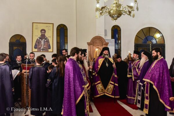Μέσα σε κλίμα κατανύξεως ετελέσθη το απόγευμα της Κυριακής των Βαΐων, 21 Απριλίου ε.έ., η πρώτη των Ιερών Ακολουθιών του Νυμφίου (Όρθρος της Μεγάλης Δευτέρας), εις την Ιερά Μητρόπολη Λαγκαδά, Λητής και Ρεντίνης. Ο Σεβασμιώτατος Μητροπολίτης Λαγκαδά, Λητής και Ρεντίνης κ.κ. Ιωάννης, χοροστάτησε εις τον Ιερό Ναό των Θεοφανείων, του Τιμίου Προδρόμου και της Αγίας Αναστασίας της Φαρμακολυτρίας της περιοχής των Λουτρών του Λαγκαδά, πλαισιούμενος από Ιερείς της καθ΄ Ιεράς Μητροπόλεως, ενώ το αναλόγιο του Ναού λάμπρυναν τα παιδιά της Βυζαντινής Χορωδίας «Ειρμός» υπό την διεύθυνση του χοράρχη τον κ. Σπυρίδωνα Ασπιώτη. Στην εσπερινή ομιλία του, προς το παριστάμενο εκκλησίασμα που προσήλθε για να παρακολουθήσει με περισυλλογή την Ιερά ταύτη Ακολουθία, η οποία και σηματοδοτεί την έναρξη της Αγίας και Μεγάλης Εβδομάδος καθώς και να προσκυνήσουν τον Νυμφίο της Εκκλησίας, ο Σεβασμιώτατος αναφέρθηκε στα γεγονότα που παρουσιάζονται σήμερα, υπογραμμίζοντας ότι θα πρέπει να ακολουθούμε το παράδειγμα του Ιωσήφ του Πάγκαλου και να φροντίζουμε να έχουμε συνεχώς πνευματική καρποφορία.