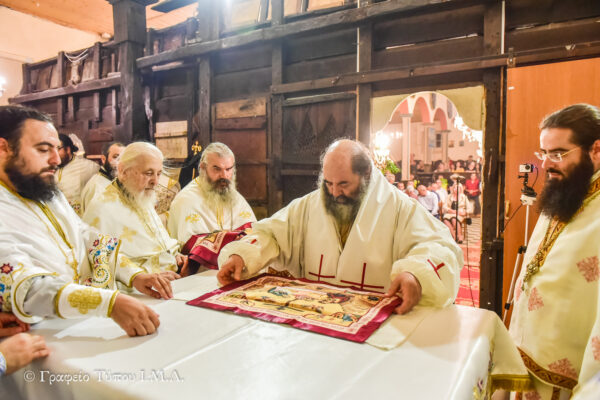 Το εσπέρας του Σαββάτου, 04 Ιουλίου 2020 πραγματοποιήθηκε η κατάθεσις των Ιερών Μαρτυρικών Λειψάνων, τα οποία και εναποτέθηκαν εις την Αγία Τράπεζα επί του Αγίου Δισκαρίου, εντός του Ιερού Βήματος, ψάλλοντας την ειδική Ακολουθία της υποδοχής των Σεπτών Λειψάνων και εν συνεχεία τελέσθηκε ο Πανηγυρικός Αρχιερατικός Εσπερινός και η Ιερά Ακολουθία επί τη διασαλεύση της Αγίας Τραπέζης.