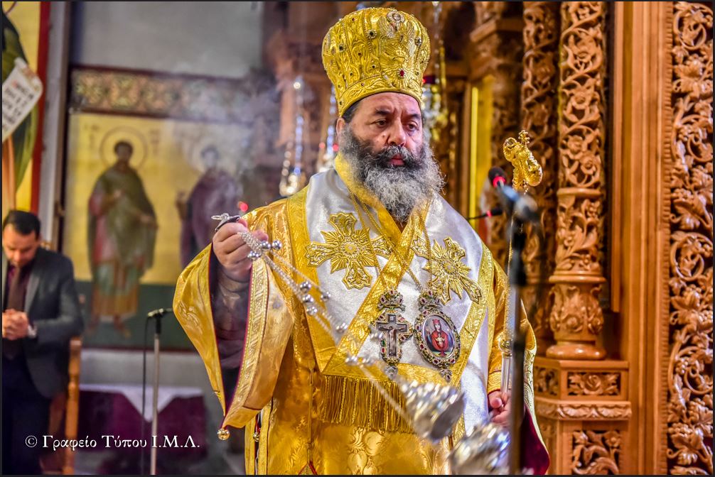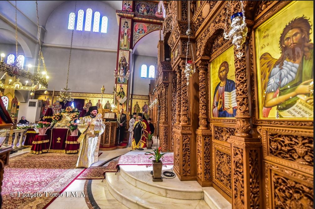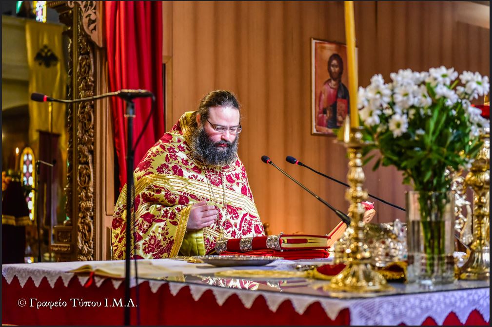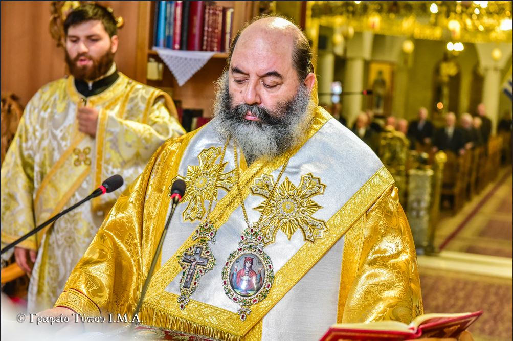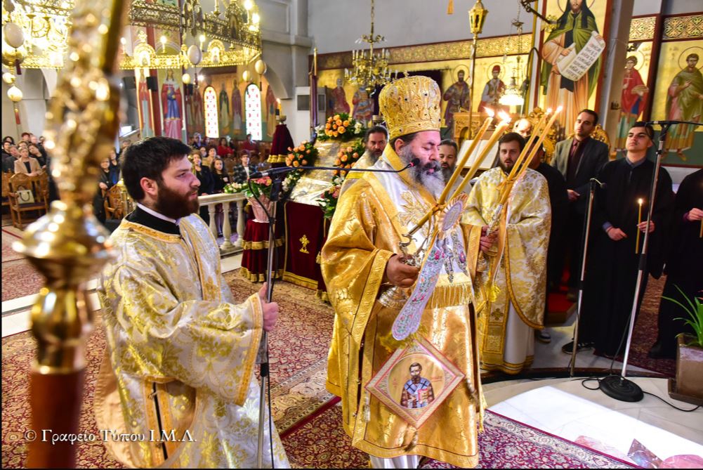 Προ της Απολύσεως και αφού συνεχάρη τον ομιλητή για την μεστή και γεμάτη νοήματα θεολογική ομιλία του, ο Σεβασμιώτατος σημείωσε την πάντα επίκαιρη εφαρμογή των λόγων του Αγίου Γρηγορίου Παλαμά, υπογραμμίζοντας πρώτα ότι «αν θέλουμε να αλλάξει η ποιότητα της ζωή μας και να έρθουμε κοντά στον Χριστό, θα πρέπει να κάνουμε βήματα «ασκήσεως» όπως οι Πατέρες και να αλλάξουμε πρώτα εσωτερικά γενόμενοι άνθρωποι του Θεού, με Πίστη και αγάπη για την αλήθεια, την ταπείνωση και την Προσευχή», ενώ καταλήγοντας ευχήθηκε προς τους παρισταμένους, προτρέποντας τους για την αυριανή μεγάλη ημέρα του διπλού εορτασμού της Πίστεως και της Πατρίδος, να σηκώσουν ψηλά και παντού τις Ελληνικές Σημαίες, δίδοντας με αυτό τον τρόπο ένα μήνυμα ότι ως Έλληνες ξέρουνε να τιμούν τους Ήρωες Προγόνους μας που θυσιάστηκαν για την Ελευθερία του Τόπου μας.