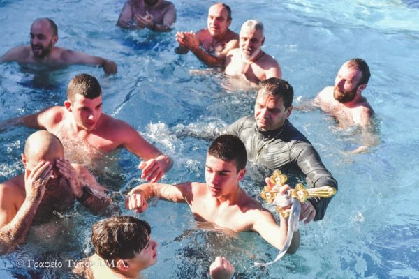 Τον Τίμιο Σταυρό ανέσυραν οι Δημήτριος Τσάκαλος στο κολυμβητήριο των Λουτρών και Γεώργιος Χριστοφόρου στη Λίμνη της Βόλβης, στους οποίους ο Σεβασμιώτατος επίδωσε τον προβλεπόμενο έπαινο της Αγίας μας Εκκλησίας.
