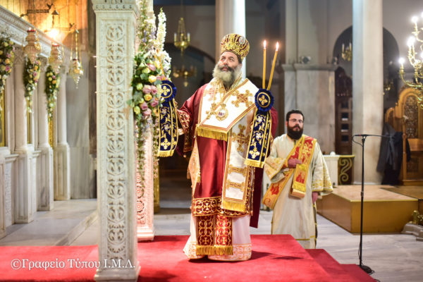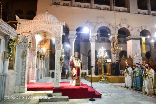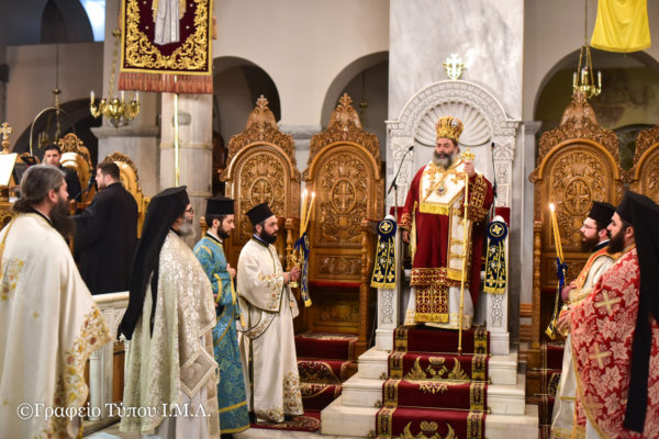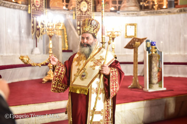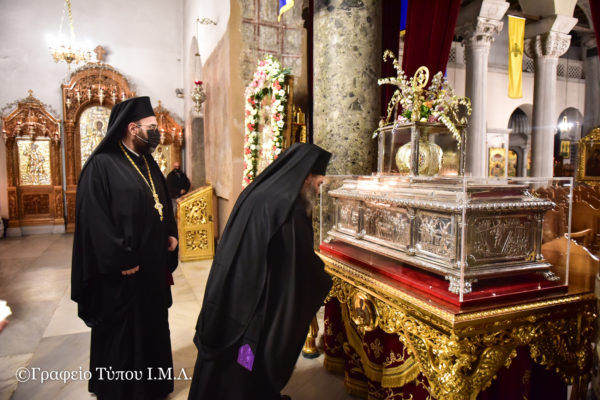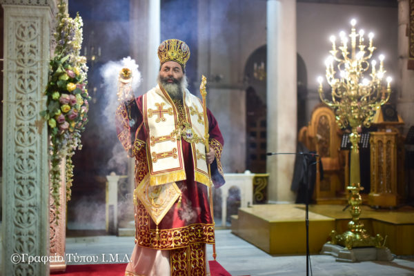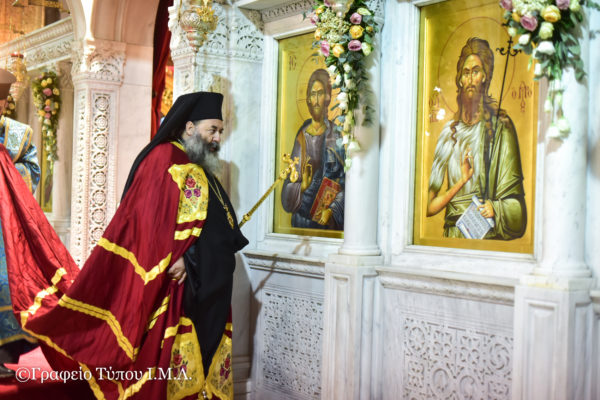 Καταλήγοντας εξέφρασε εκ μέσης καρδίας λόγους ευχαριστίας προς τον οικείο Ποιμενάρχη για την ευλογία που του παρείχε, ώστε όλες αυτές τις ημέρες να λάβει μέρος στις λατρευτικές εκδηλώσεις, ενώ συνεχάρη τον Ιερατικό Προϊστάμενο του ως άνω Ναού Πανοσιολογιώτατο Αρχιμανδρίτη π. Δαμασκηνό Πέτικα και τους συνεφημέριους του, για τη φιλοξενία και την πρόσκληση που του απηύθυναν καθώς επίσης και για την κατά πάντα άρτια οργάνωση της πανηγύρεως, παρόλο τις πρωτόγνωρες και δύσκολες καταστάσεις που βιώνει ο τόπος μας.