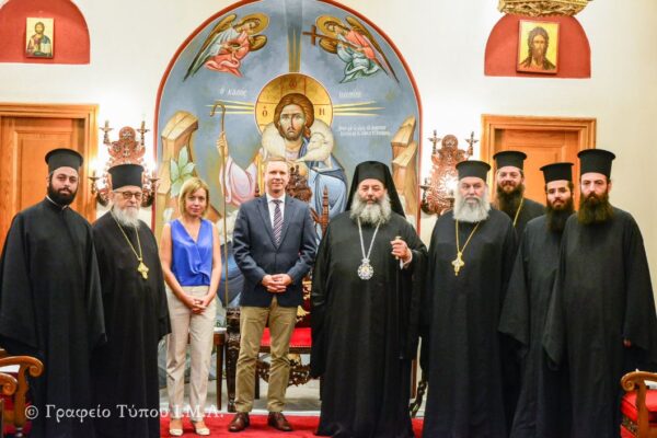 Την Τετάρτη, 18 Σεπτεμβρίου 2019, ο Σεβασμιώτατος Μητροπολίτης Λαγκαδά, Λητής και Ρεντίνης κ. Ιωάννης, εδέχθη εις τα Γραφεία της Ιεράς Μητροπόλεως την τιμητική του κ. Gregory W. Pfleger, Jr., Γενικού Προξένου των Ηνωμένων Πολιτειών Αμερικής στην Θεσσαλονίκη, συνοδευόμενος από την κ. Ξενια Κοσμίδου, υπεύθυνη Πολιτικών Υποθέσεων του Προξενείου.