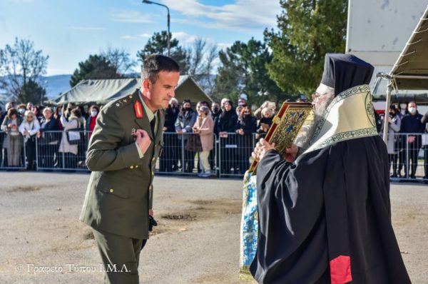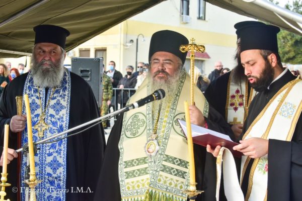 Ο Σεβασμιώτατος προέστη της τελετής κατόπιν προσκλήσεως του Διοικητού της 34ης Ταξιαρχίας Πεζικού, Ταξιάρχου (ΠΖ) κ. Γεωργίου Καλαμποκά.