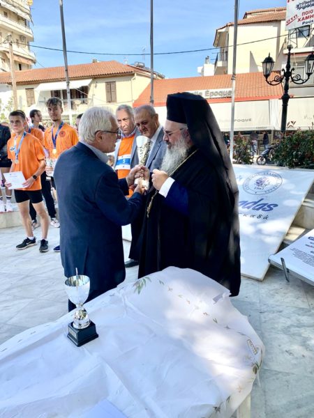 Στους πρώτους νικητές των αγώνων την απονομή έκανε ο Σεβασμιώτατος, ενώ τιμητικά έλαβε και ο ίδιος βραβείο για την στήριξη του στον αθλητισμό και την προσφορά του στην πόλη του Λαγκαδά, ευχαριστώντας παράλληλα τους διοργανωτές για την πρόσκληση και την βράβευση, ενώ απευθυνόμενος προς όλους επισήμανε την αξία του αθλητισμού, και ιδιαιτέρως την σημασία της «ευγενούς άμιλλας» και του «εύ αγωνίζεσθαι», παραλληλίζοντας την προπόνηση για τον αθλητισμό με την ζωή και τον καθημερινό πνευματικό αγώνα.