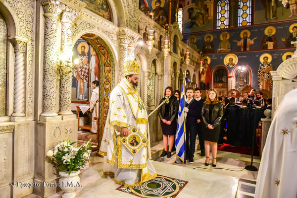 Στον σύντομο χαιρετισμό του ο Σεβασμιώτατος συνεχάρη του Μαθητές και τις Μαθήτριες για τις άριστες επιδόσεις τους στα μαθήματα, ευχόμενος προς αυτούς διαρκή πρόοδο και επιτυχία στις σπουδές τους, σημειώνοντας μεταξύ άλλων, ότι ο Λόγος των Αγίων Πατέρων είναι ο Λόγος του Θεού και γι΄ αυτό είναι πάντα επίκαιρος και δίδει συνεχώς απαντήσεις σε όποιους πιθανόν προβληματισμούς έχουν ακόμα και σήμερα, ενώ καταλήγοντας τα προέτρεψε να κάνουν ένα restart, και έχοντας ως παράδειγμα τις μορφές των Τριών Ιεραρχών, να αποκτήσουν περιεχόμενο ζωής γενόμενοι αληθινοί Χριστιανοί και όπως μας θέλει ο Κύριος, διότι μόνο έτσι θα μπορούν να ζουν μέσα στο Μεγαλείο της Πίστεως μας, προφυλάσσοντας τον εαυτό τους από κάθε τι που είναι γύρω τους και εγκυμονεί κινδύνους.