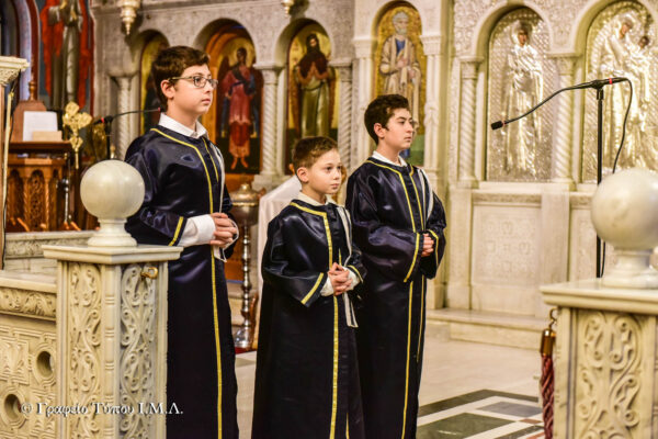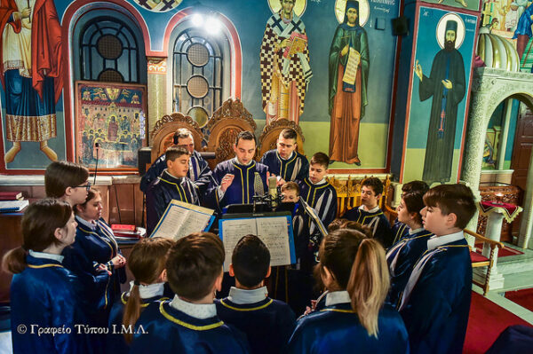 Κατά την διάρκεια της Θείας Λειτουργίας, παρέστησαν εκπρόσωποι της Δημοτικής Αυτοδιοικήσεως, αντιπροσωπείες μαθητών και μαθητριών της Πρωτοβάθμιας και Δευτεροβάθμιας Εκπαιδεύσεως, Δάσκαλοι και Εκπαιδευτικοί καθώς και αρκετοί Πιστοί, ενώ το αναλόγιο του Ναού λάμπρυνε με την παρουσία τους η Παιδική Χορωδία «Ειρμός», εις την οποία στο τέλος απονεμηθήκαν τιμητικοί τίτλοι εξ αφορμής των πρώτης θέσης που λάβανε σε πανελλήνιο διαγωνισμό χορωδιών.