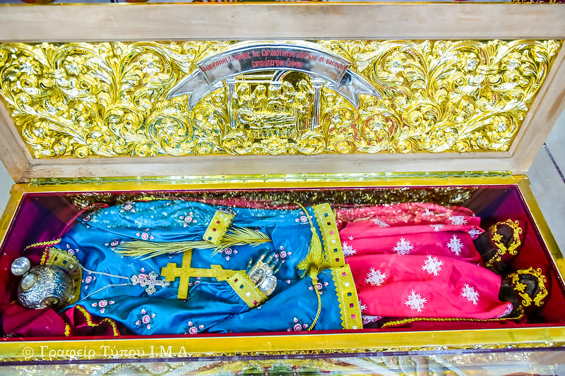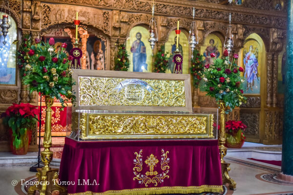 Ακολούθησε μικρή Λιτάνευσις πέριξ του Ιερού Ναού των Σεπτών και Χαριτοβρύτων Λειψάνων της Αγίας και της Θαυματουργού Εικόνος της και εν συνεχεία προσφέρθηκαν προς όλους παραδοσιακά τοπικά κεράσματα.