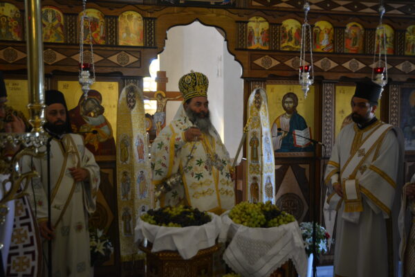 Τον Σεβασμιώτατο Μητροπολίτη πλαισίωσαν πολλοί ιερείς με προεξάρχοντα τον Ηγούμενο της Ιεράς Μονής Παρακλήτου εις την περιοχήν του Οροπού Πανοσιολ. Αρχιμ. Ιωσήφ, ενώ μεταξύ του περιορισμένου αριθμού εκκλησιάσματος, το οποίο τήρησε τα μέτρα προστασίας, παρέστησαν ο βουλευτής Β’ Θεσσαλονίκης της Ν.Δ. κ. Σάββας Αναστασιάδης και ο πρώην Αρχηγός Γ.Ε.ΕΘ.Α. κ. Φράγκος Φραγκούλης. Προ της απολύσεως της Αρχιερατικής Θείας Λειτουργίας ευλογήθηκαν και οι προσφερόμενοι, όπως προβλέπει η παράδοση της Εκκλησίας μας, καρποί της Αμπέλου, οι οποίοι και μοιράστηκαν προς το παριστάμενο εκκλησίασμα μαζί με το Αντίδωρο, ενώ ακολούθησε μοναστηριακό κέρασμα και τράπεζα στο Αρχονταρίκι της Μονής.