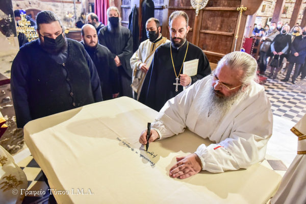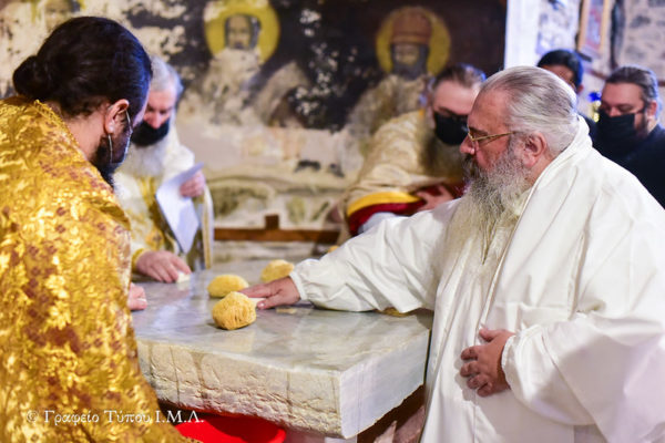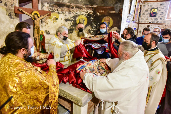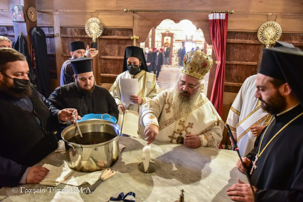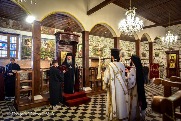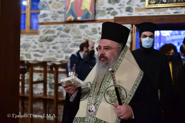 Προ της Απολύσεως απένειμε τον δίκαιο της Εκκλησίας έπαινο και το Μετάλλιο του Αγίου Αθανασίου στον κ. Δημήτριο Κούτουλα, ο οποίος υπήρξε ακούραστος πρωτεργάτης σε όλη την πορεία των αναστηλωτικών εργασιών, καθώς επίσης και στους κ. Κωνσταντίνο Κατάκαλου και κ. Λάμπρο Κωτούλα, ευχαριστώντας του για ακόμη μία φορά για τις μελέτες και το ανύσταχτο ενδιαφέρον που επέδειξαν για την αποπεράτωση του έργου.