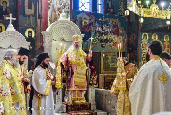 Προ της περατώσεως των Ιερών Ακολουθιών στον σύντομο χαιρετισμό του ο Σεβασμιώτατος ευχήθηκε προς όλους τα δέοντα ώστε το έτος να είναι καρποφόρο και υγιεινό, ο Κύριος να ευλογεί το έργο και την προσδοκία του καθενός στην προσωπική και την οικογενειακή του ζωή, σημειώνοντας χαρακτηριστικά, ότι όποια και αν είναι τα προβλήματα μας, αν έχουμε πίστη στον Θεό, κατά το «Ει ο Θεός μεθ’ ημών ουδείς καθ’ υμών», υπάρχει η βεβαία ελπίδα ώστε να πορευόμαστε και να βιώνουμε των Επουρανίων δωρεών και αγαθών μέσα στην ζωή της Αγίας μας Εκκλησίας.