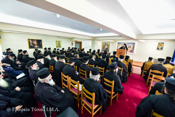 Η Δ΄ Γενική Ιερατική Σύναξη περάτωσε τις εργασίες της με γεύμα στην Τράπεζα της Μονής, το οποίο παρέθεσε ο Σεβασμιώτατος προς όλους του Κληρικούς στην μνήμη της αοιδίμου μητρός του.