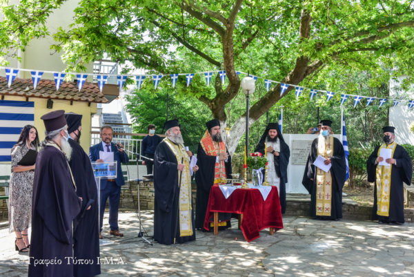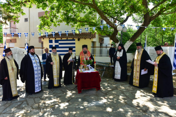Στον σύντομο χαιρετισμό του ο Σεβασμιώτατος Τοποτηρητής σημείωσε ότι «η Ελευθερία είναι προϋπόθεση ζωής και δημιουργίας για τον κάθε άνθρωπο, ιδιαιτέρως δε για εμάς τους Έλληνες. Δεν χρειάζεται να μένουμε μόνο στην επιφάνεια όλων αυτών των επετειακών εκδηλώσεων, αλλά θα πρέπει να εντρυφήσουμε στα νοήματα αυτών των επετείων και να σπουδάσουμε το τι θέλουν να μας πουν και να μας δείξουν ουσιαστικά, και κυρίως μιμούμενοι σήμερα τις αρετές των πατέρων και των προγόνων μας, να δημιουργήσουμε όλες εκείνες τις προϋποθέσεις για την πρόοδο και την αξιοπρέπεια της Πατρίδος μας, η οποία ακόμα και σήμερα ευρίσκεται στην δίνη ενός επικίνδυνου κυκλώνα».