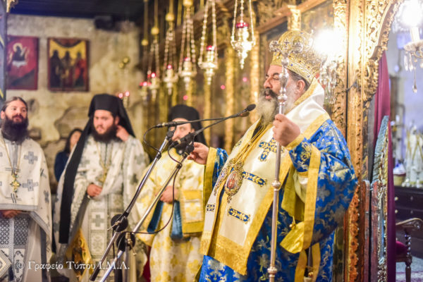 Στην ομιλία του προς το παριστάμενο εκκλησίασμα, μεταξύ των οποίων παρέστησαν εκπρόσωποι της Πρωτοβάθμιας Εκπαιδεύσεως με τις Ελληνικές Σημαίες ανά χείρας, αναφέρθηκε τόσο στην μορφή του σήμερα τιμωμένου Αγίου Αποστόλου Λουκά, όσο και στην ιστορική για την Μακεδονία μας σημερινή ημέρα, υπογραμμίζοντας μεταξύ άλλων τους ένδοξους αγώνες των προγόνων μας για την Ελευθερία της περιοχής και την διατήρηση της Εθνικής μας ταυτότητος, ενώ καταλήγοντας τόνισε στεντόρεια τη φωνή ότι «Η Μακεδονία, ήταν, είναι, και θα είναι για πάντα Ελληνική» προτρέποντας τους παρισταμένους να ψάλλουν όλοι μαζί τον Εθνικό μας Ύμνο.