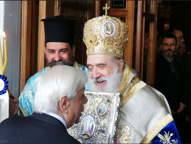 Στήν ἐπίσημη Δοξολογία ἡ ὁποία τελέσθηκε παρουσίᾳ τοῦ Ἐξοχωτάτου Προέδρου τῆς Ἑλληνικῆς Δημοκρατίας, τῶν Πολιτικῶν καί Στρατιωτικῶν Ἀρχῶν τῆς Νήσου, τῶν Σχολείων τῆς Πρωτοβάθμιας καί Δευτεροβάθμιας ἐκπαίδευσης καί πλήθους κόσμου, ὁ Σεβασμιώτατος προσεφώνησε ἐγκαρδίως τόν Ἐξοχώτατο Πρόεδρο κ.κ. Παυλόπουλο τονίζοντας πώς τό θαῦμα τῆς Ἑνώσεως τῆς Σάμου μέ τήν Μητέρα Ἑλλάδα ἦταν καρπός τῆς ἑνότητος καί τῆς ὁμοψυχίας τῶν προγόνων μας. Μάλιστα πρός τοῦτο τόν παρεκάλεσε ἐπί λέξει: «ὡς τό ὁρατόν σύμβολον τῆς ἱερᾶς ἑνότητος καί ὁμοψυχίας τοῦ Ἔθνους μας, νά συμβάλει, ὥστε ὅλοι οἱ Ἕλληνες μέ τήν γενναιότητα καί τό ἀνδρεῖο φρόνημα, πού μᾶς διακρίνει καί ὑπό τό φῶς τῆς Ἑλληνορθοδόξου Παραδόσεώς μας νά διαφυλάξουμε τήν ἐθνική ἑνότητα, ὁμοψυχία μας καί τήν Ὀρθόδοξη Χριστιανική μας παράδοσή, ἰδίως στήν σύγχρονη δυσμενῆ συγκυρία, ἐν μέσῳ πολλῶν καί πιεστικῶν προβλημάτων, συνδεομένων κυρίως μέ τίς ἀνεξέλεγκτες μεταναστευτικές ροές, ὥστε νά συνεχίσωμεν φυλάσσοντες τά σύνορά τῆς φιλτάτης ἡμῶν Πατρίδος, πρός ἀπρόσκοπτον συνέχισιν τῆς ἱστορικῆς μας πορείας.»
