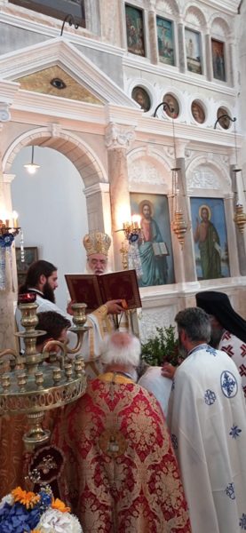  Τό Σάββατο 16η Ἰουλίου 2022 τό πρωί χοροστάτησε εἰς τήν Θεία Λειτουργίαν εἰς τήν Ἱεράν Μονήν Ζωοδόχου Πηγῆς Γλαρέδων/Λακέδων Ἰκαρίας, ἐτέλεσε ἐτήσιον Μνημόσυνον τοῦ ἀειμνήστου Ἱερέως π. Εὐαγγέλου Γλαροῦ ἐφημερίου ἐπί πολλά ἒτη τῆς ἐνορίας Ἁγίου Γρηγορίου Γλαρέδων καί ἀπένειμε τό ὀφφίκιον τοῦ Πρωτοπρεσβυτέρου εἰς τόν π. Παντελεήμονα Ποῦλον, Ἐφημέριον Ἁγίου Παντελεήμονος Ἁγίου Κηρύκου καί ἄλλων κενῶν Ἐνοριῶν. Ὁ Σεβασμιώτατος τό μεσημέρι μετέβη εἰς τό Στρατόπεδον Ἁγίου Κηρύκου κομίζοντας πρός προσκύνησιν τό Ἱερόν Λείψανον τοῦ Ἁγίου Μεγαλομάρτυρος Γεωργίου, Προστάτου τοῦ Ἑλληνικοῦ Στρατοῦ, τέλεσε Δέησιν καί ὁμίλησε πρός τούς Ἀξιωματικούς, ὁπλίτας καί τό πολιτικόν προσωπικόν τῆς Μονάδος. Τό ἀπόγευμα χοροστάτησε εἰς τόν Ἀρχιερατικόν Ἑσπερινόν εἰς τήν Ἱεράν Μονή Εὐαγγελισμοῦ τῆς Θεοτόκου Λευκάδος (1775) ὁμίλησε γιά τό πνευματικό κίνημα τῆς Φιλοκαλικῆς ἀναγέννησης τοῦ 18ου αἰῶνος τῶν Ἁγίων Κολυβάδων Πατέρων.