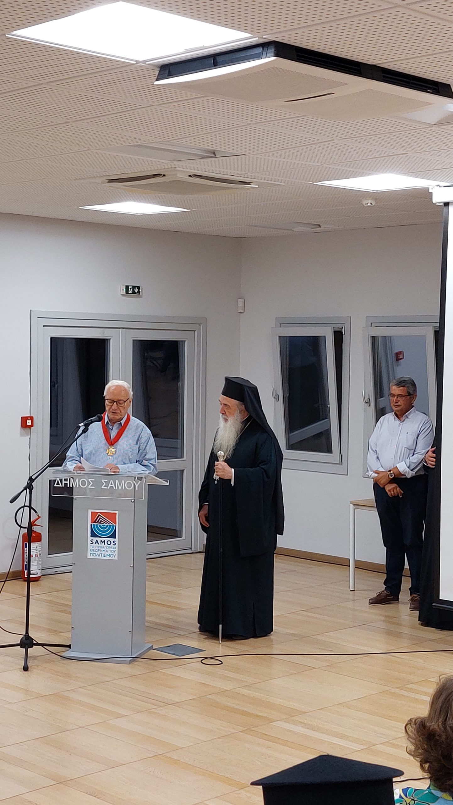 Επίσης, ο Διευθυντής του Κέντρου υπήρξε συντονιστής και ομιλητής στην εκδήλωση που διοργανώθηκε από την Ιερά Μητρόπολη Σάμου και Ικαρίας, δια του «Κέντρου Εκκλησιαστικών, Ιστορικών και Πολιτισμικών Μελετών», για να τιμηθεί η προσφορά του «Ιδρύματος Κωνσταντίνου & Μαρίας Ζημάλη» και του «Μουσείου Φυσικής Ιστορίας Αιγαίου» στο πρόσωπο του Προέδρου τους κ. Ευαγγέλου Ζημάλη (Πυθαγόρειο Σάμου, 16 Αυγούστου 2023), με θέμα: «Η προσφορά του ‘Ιδρύματος Κωνσταντίνου & Μαρίας Ζημάλη στη σαμιακή πολιτιστική ζωή».