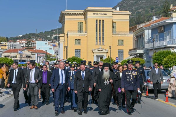 Στη συνέχεια τέλεσε Επιμνημόσυνη δέηση ενώπιον του Ανδριάντος του Θεμιστοκλή Σοφούλη και από της εξέδρας παρακολούθησε την μαθητική και στρατιωτική παρέλαση.