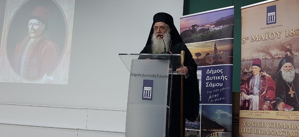 Το απόγευμα ο Σεβασμιώτατος τίμησε με την παρουσία του εκδήλωση του Δήμου Δυτικής Σάμου όπου και απηύθηνε Χαιρετισμό. Κύριος ομιλητής ο Καθηγητής κ. Μανώλης Βαρβούνης με θέμα: «Ο Λογοθέτης Λυκούργος πριν το 1821». Μαθητική χορωδία του Κατηχητικού Σχολείου της Ενορίας του Αγίου Νικολάου Όρμου Καρλοβάσου και Ομάδες Μαθητών Δευτεροβάθμιας Εκπαιδεύσεως Γυμνασίου και Λυκείου Καρλοβάσου και Μαραθοκάμπου παρουσίασαν επετειακό πρόγραμμα.