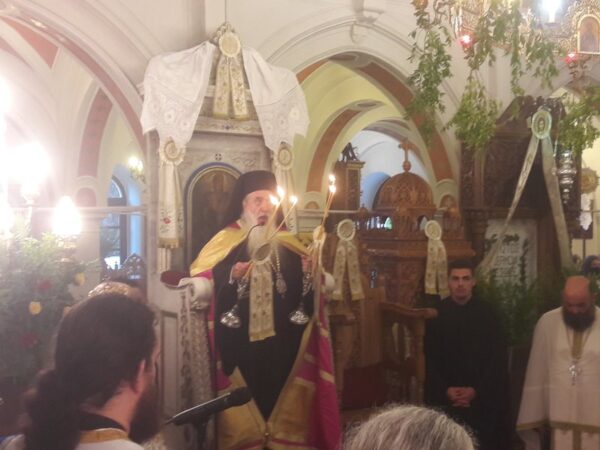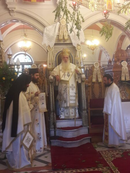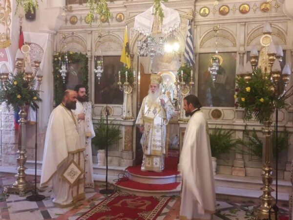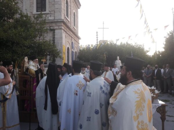 Ο Σεβασμιώτατος μίλησε τονίζοντας τόσο το πνευματικό όσο και το εθνικό περιεχόμενο της μεγάλης Δεσποτικής εορτής της Μεταμορφώσεως του Σωτήρος αλλά και της νίκης των Σαμίων κατά των Οθωμανικών δυνάμεων την 6η Αυγούστου 1824 , νίκη την οποία αφιέρωσαν στον Σωτήρα Χριστό. Την κυριώνυμο ημέρα στον περικαλλή και ιστορικό ναό της Μεταμορφώσεως τελέσθηκε πανηγυρικός Όρθρος και Αρχιερατική θεία Λειτουργία Ιερουργούντος του Σεβασμιωτάτου Μητροπολίτου Σάμου, Ικαρίας και Κορσέων κ. Ευσεβίου ο οποίος κατά το τέλος της επισήμου Δοξολογίας για την τοπική Εθνική Επέτειο εκφώνησε τον πανηγυρικό της ημέρας, στη συνέχεια με την συνοδεία του κλήρου, των αρχών του τόπου και του πιστού λαού κατευθύνθηκαν στον προαύλιο χώρο του Ιερού ναού όπου τελέσθηκε επιμνημόσυνη δέηση υπέρ των πεσόντων ηρώων και έγινε κατάθεση στεφάνων από τους επισήμους στο κενοτάφιο ενώπιον του ανδριάντος του αρχηγού της Σαμιακής επαναστάσεως Λυκούργου Λογοθέτη.