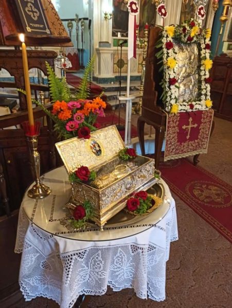 Προ της απολύσεως της Θείας Λειτουργίας τελέσθηκε μικρά Λιτάνευσις της Εικόνος του Αγίου Γεωργίου και του Ιερού Λειψάνου του.