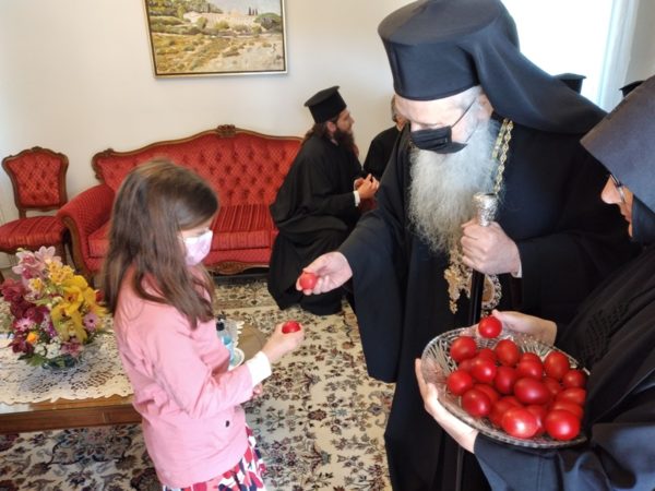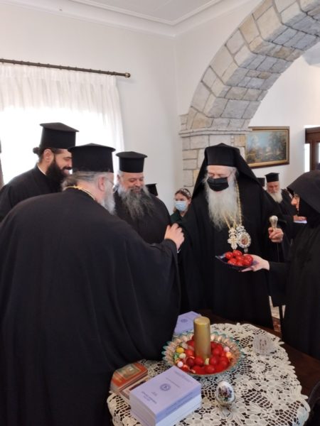 Στο τέλος της Θείας Λειτουργίας μίλησαν ο νεότερος Διάκονος της Μητρόπολης π. Χριστόδουλος Σελλής και ο Πανοσολογιώτατος Πρωτοσύγκελος, Αρχιμανδρίτης π. Σωτήριος Κοσμόπουλος, ο οποίος και προσέφερε εκ μέρους του ιερού κλήρου εικόνα της Παναγίας μας.