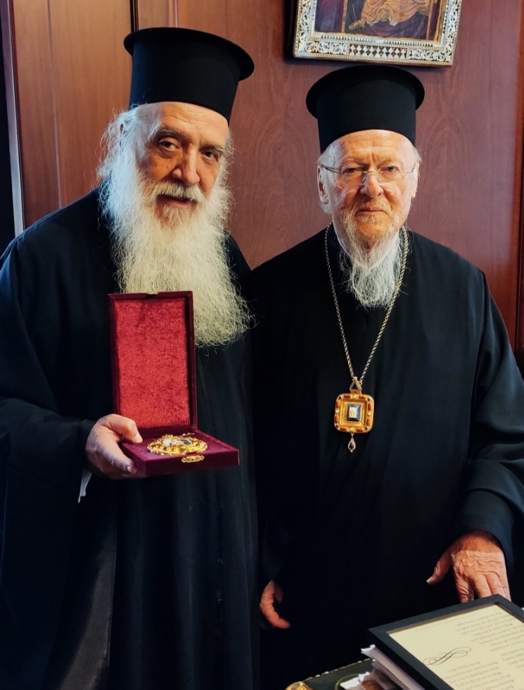 Εν συνεχεία και σε ελάχιστη ένδειξη της ευαρεσκείας της Μητρός Εκκλησίας πρός τον σεπτό Ποιμενάρχη, του δώρισε ένα προσωπικό του αρχιερατικό εγκόλπιο, ευχόμενος σε αυτό: «ακόμη μία τριακοντετίαν».