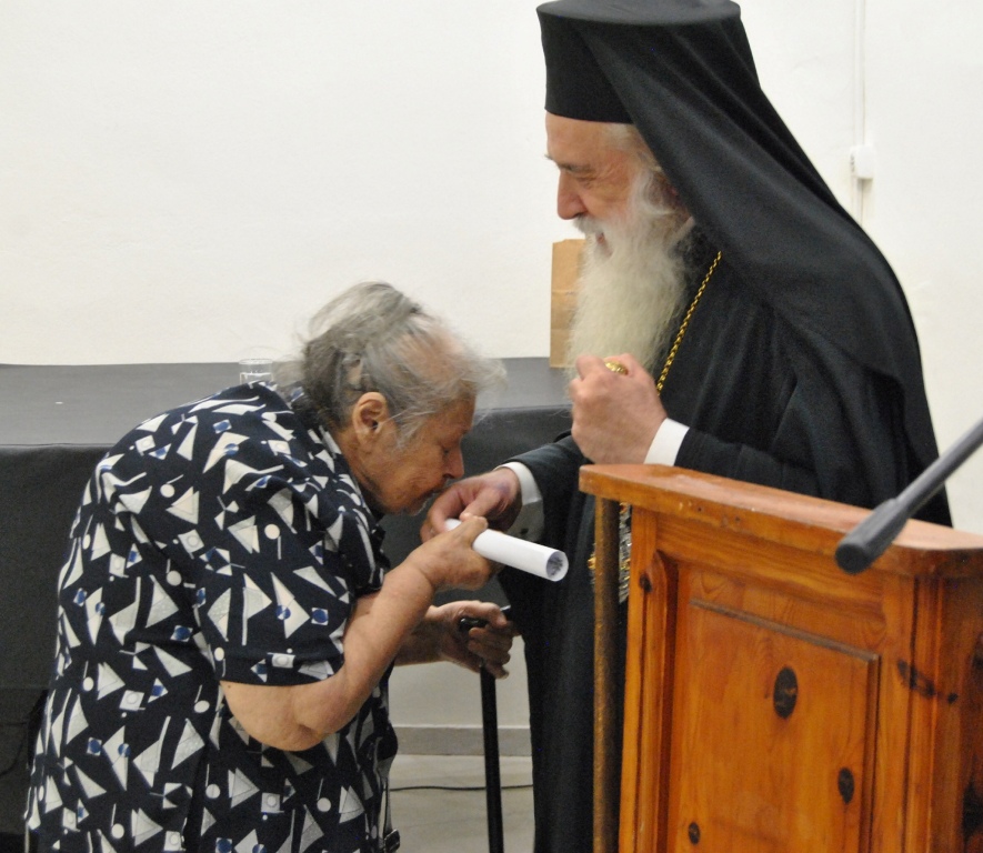 Ο Σεβασμιώτατος Μητροπολίτης απηύθυνε πατρικό χαιρετισμό, ευχαρίστησε τους ομιλητές και όσους κοπίασαν για την άριστη έκβαση της εκδηλώσεως. Επιπλέον επαίνεσε και συνεχάρη όλους όσους διακονούν παντοιοτρόπως ώστε το Μοναστήρι μας να μένει ζωντανό και τίμησε την διακεκριμένη καλλιτέχνιδα Ικαριακής καταγωγής Παρασκευή (Βούλα) Χονδρουδάκη για την διαχρονική προσφορά της στην Ιερά Μονή.