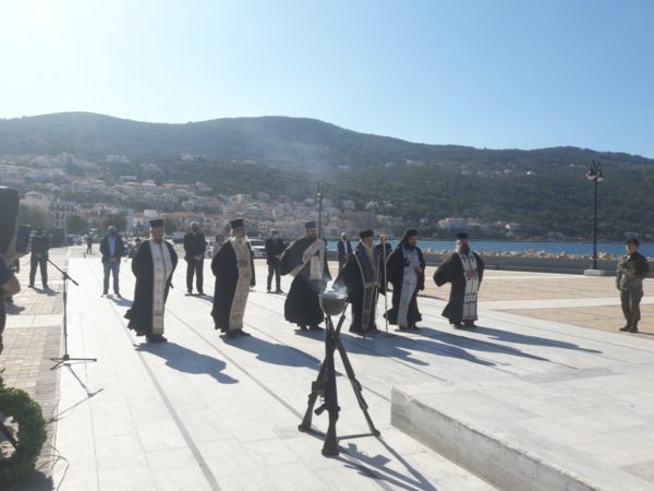 Ο φετινός εορτασμός μπορεί να μην ήταν λαμπρός, όπως τα προηγούμενα χρόνια όμως εορτάστηκε με Αρχιερατική θεία Λειτουργία στον Ιερό Μητροπολιτικό Ναό του Αγίου Νικολάου Βαθέως υπο του Σεβασμιωτάτου κ. Ευσεβίου στη συνεχεία τελέσθηκε Δοξολογία και επιμνημόσυνη δέηση έμπροσθεν του ανδριάντος του Προέδρου Θεμιστοκλή Σοφούλη, υπέρ αναπαύσεως των ψυχών των υπέρ πίστεως και πατρίδος πεσόντων. Παράστησαν οι αρχές του νησιού μας..