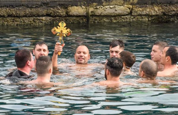 Ακολούθως ο Μητροπολίτης κ. Ευσέβιος προέστη της Ιεράς Λιτάνευσης του Τιμίου Σταυρού προς το λιμάνι της Σάμου, με τη συνοδεία της Φιλαρμονικής της πόλης «Βαθύλλος», στρατιωτικού αγήματος, των πολιτικών και στρατιωτικών αρχών και πλήθος κόσμου, όπου και τελέσθηκε η ακολουθία του Αγιασμού των Υδάτων. Ένδεκα νέοι βούτηξαν για να ανασύρουν τον Τίμιο Σταυρό στους οποίους ο Σεβασμιώτατος προσέφερε ευλογίες και ενθύμια.