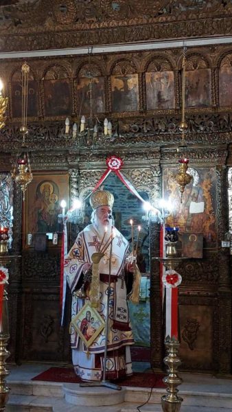 Ανήμερα της εορτής χοροστάτησε στον Όρθρο και Ιερούργησε στον Ιερό Ναό του Αγίου Αντωνίου Άνω Βαθέος καθ’ότι ο Ναός της Αγίας Ματρώνης στο Άνω Βαθύ παραμένει πληγωμένος από τον σεισμό της 30ης Οκτωβρίου 2020. Τον θείο λόγο διηκόνησε ο Αρχιμανδρίτης π. Χριστόδουλος Σελλής Ιεροκήρυκας της Μητρόπολης.
