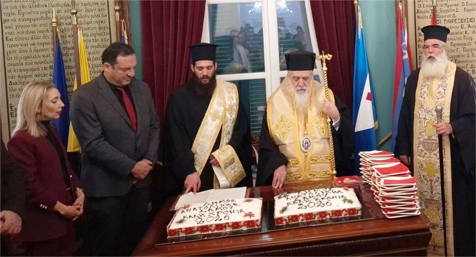 Την Πέμπτη 1η Ιανουαρίου 2026, ημέρα της Πρωτοχρονιάς, ο Σεβασμιώτατος Ποιμενάρχης μας χοροστάτησε στον Όρθρο και τέλεσε τη Θεία Λειτουργία στον ως άνω Ιερό Μητροπολιτικό Ναό. Ακολούθως προέστη της επισήμου Δοξολογίας επί τη ενάρξει του Νέου Έτους.