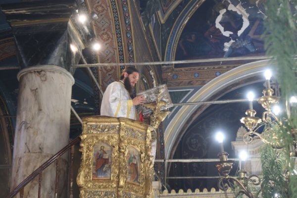 Χθες, στον ίδιο Ιερό Ναο τελέσθηκε Τρισαρχιερατικός Εσπερινός, χοροστατούντος του Σεβασμιωτάτου Μητροπολίτου Περιστερίου κ. Γρηγορίου, ο οποίος στο κήρυγμά του ανέπτυξε τους αδιάψευστους λόγους του Κυρίου «εγώ ειμί η οδός, η αλήθεια και η ζωή»