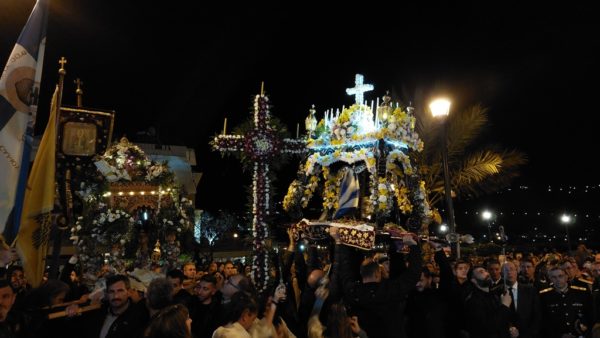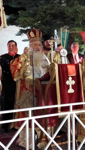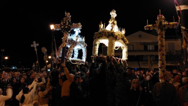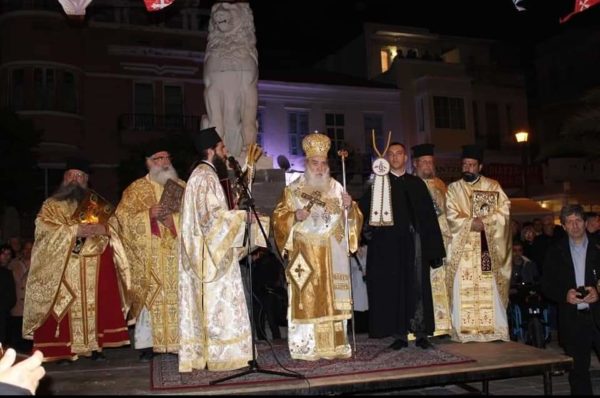 Κατά την καθιερωμένη “Συνάντηση” των Επιταφίων των τεσσάρων Ενοριών της πόλης μας στην Κεντρική Πλατεία το βράδυ της Μ. Παρασκευής ο Σεβασμιώτατος ομίλησε προς το εντυπωσιακά μέγα πλήθος, των Χριστιανών που συμμετείχαν με ευλάβεια και κατάνυξη.