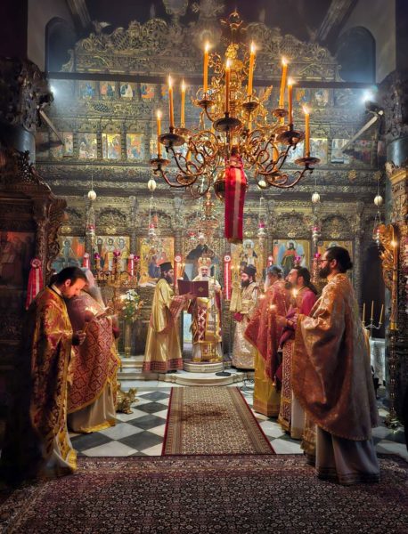 Ο Σεβασμιώτατος χοροστάτησε στην Ιερά Ακολουθία του ιερού Νιπτήρα, που τελείται κατά παράδοση, την Μεγάλη Τετάρτη στην Ιερά Μονή Τιμίου Σταυρού και μίλησε για την θεοειδή ταπείνωση και για τα ιστορικά στοιχεία που πιστοποιούν την αυθεντικότητα των τόπων της Σταυρώσεως και της Αναστάσεως του Κυρίου Ιησού Χριστού.