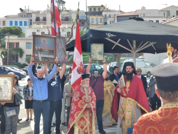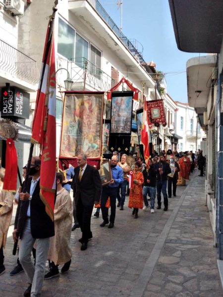 Κόκκινες σημαίες με Σταυρούς και Λιτανεία στο Καρλόβασι Σάμου