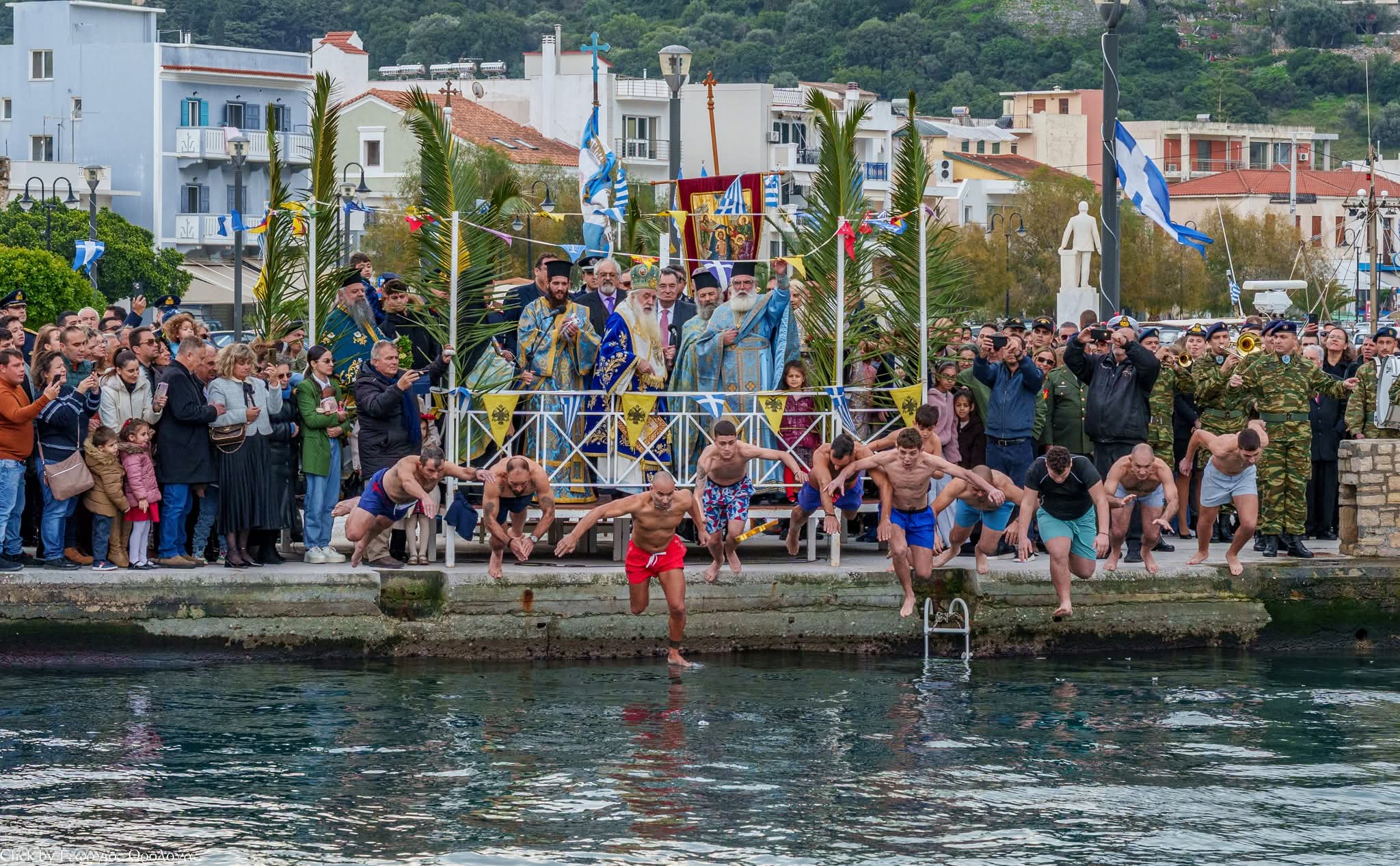 Άνδρες διαφόρων ηλικιών αψήφισαν τις δυσκολίες και βούτηξαν στα παγωμένα νερά, προκειμένου να ανασύρουν τον Τίμιο Σταυρό, προκαλώντας συγκίνηση και εθνικό ενθουσιασμό, σε όλους τους παρευρισκομένους. Έλαβαν δε παρά του Σεβασμιωτάτου έγγραφη αναμνηστική ευλογία και φυλακτήριο Τίμιο Σταυρό.