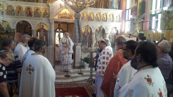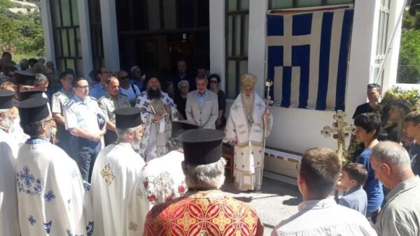 Μετά το πέρας της θείας Λειτουργίας ο Εφημέριος του Ιερού Ναού Αιδ/τος π. Στυλιανός Πούλος προσφώνησε τον Σεβασμιώτατο, κάνοντας σύντομη αναφορά στο ιστορικό του Ναού από της ανεγέρσεώς του μέχρι σήμερα και κατέληξε στη συντυχία μαζί με το χρυσό ιωβηλαίο των πενήντα χρόνων του Ναού να εορτάζει το ιωβηλαίο της εικοσιπενταετούς ποιμαντορίας του ο Σεβασμιώτατος Μητροπολίτης κ. Ευσέβιος, ο οποίος διαποιμαίνει τα ακριτικά Νησιά της Σάμου, της Ικαρίας και των Φούρνων από του 1995.