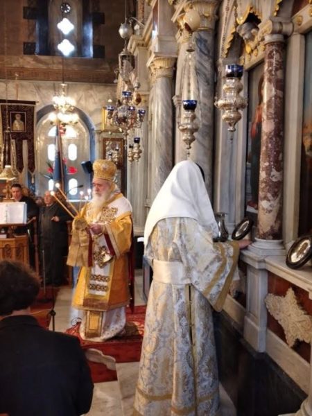 Ο Σεβασμιώτατος λαβών αφορμήν από την καρδιακή προσφώνηση του νεοχειροτονηθέντος Διακόνου, επαίνεσε την απόφασή του να ακολουθήσει την κλήση του Θεού και την αφ’ εαυτού του κλίση, ώστε να ενδυθεί το μοναχικό τριβώνιο και να αφιερωθεί στη διακονία του Θεού και του Λαού του. Τόνισε προς αυτόν την ανάγκη της ενδελεχούς λατρευτικής ζωής και της μελέτης της Αγίας Γραφής και των Πατέρων, ώστε ως η κατά τον Μέγα Βασίλειον φίλεργη μέλισσα να καταστή ικανός και άξιος της διακονίας του Χριστού και της Εκκλησίας Του.