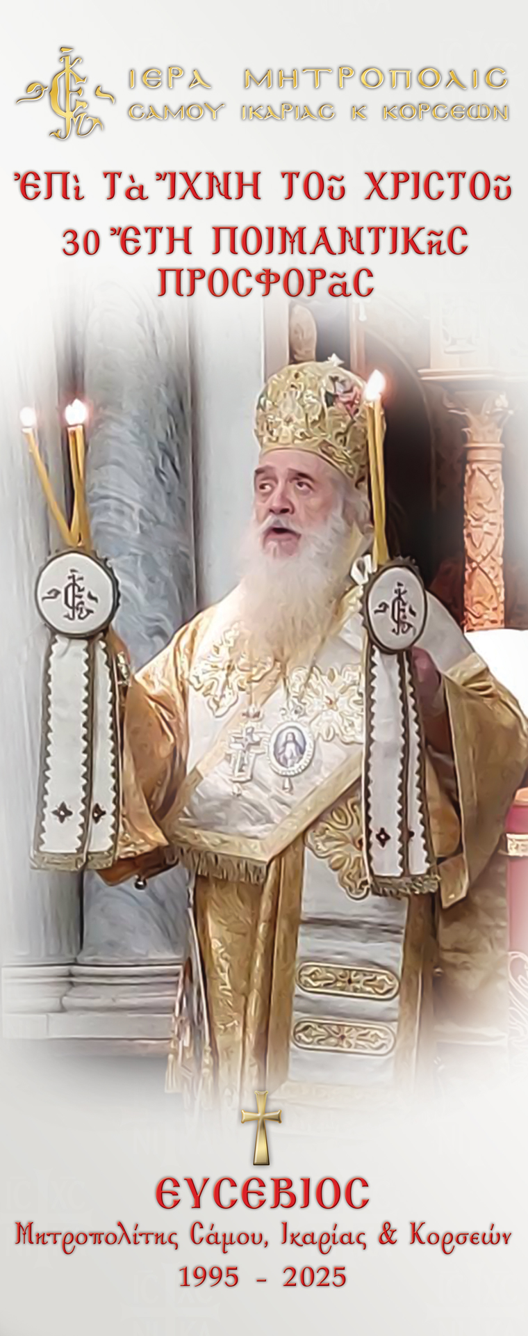 Η Ιερά Μητρόπολη Σάμου και Ικαρίας προσκαλεί με βαθιά συγκίνηση και πνευματική χαρά στην επετειακή εκδήλωση για τη συμπλήρωση 30 ετών ποιμαντικής πορείας του Σεβασμιωτάτου Μητροπολίτου Σάμου κ. Ευσέβιου.