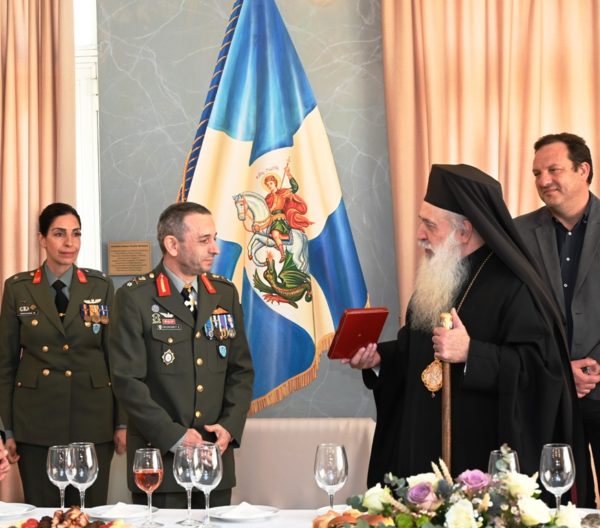 Ακολούθως στην ΛΑΦ Σάμου παρατέθηκε δεξίωση προς όλους τους παρευρισκομένους. Ο Σεβασμιώτατος απηύθυνε φιλόφρονας λόγους στον Σάμιο Αντιστράτηγο Διοικητή ΑΣΔΕΝ κ. Εμμανουήλ Θεοδώρου προσφέροντας Εικόνα του Αγίου Νικολάου προστάτου της Ενορίας του στο Κοκκάρι. Στον έως τώρα Ταξίαρχο κ. Σπυρίδωνα Παπαγεωργίου εκφράζοντας την ευαρέσκεια της Τοπικής Εκκλησίας του δώρισε αργυρό δισκάριο με έκτυπη την εικόνα της θείας και ενδόξου Μεταμορφώσεως του Σωτήρος Χριστού και με την ιστορικής σημασίας επιγραφή «Χριστός Σάμον Έσωσε τη 6η αυγούστου 1824». Στον δε αναλαμβάνοντα Ταξίαρχο κ. Ελευθέριο Οικονόμου προσέφερε εικόνα της Θεομήτορος με την ευχή να είναι οδηγός του στο δύσκολο έργο που έχει να επιτελέσει στο πλέον νευραλγικό και ευαίσθητο σημείο της Πατρίδας μας.