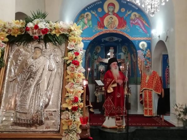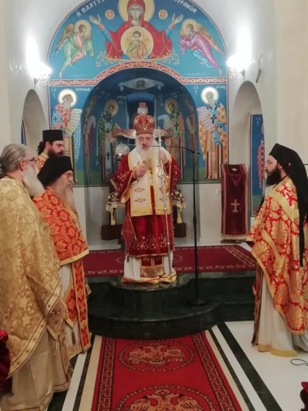 Η Θεία Λειτουργία τελέστηκε κεκλεισμένων των θυρών λόγω των μέτρων για την πρόληψη από την πανδημία του κορωνοϊού.